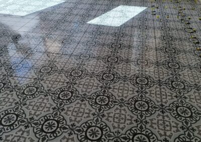 Colocación de suelos interiores y exteriores con nivelación cuidada y buen acabado
